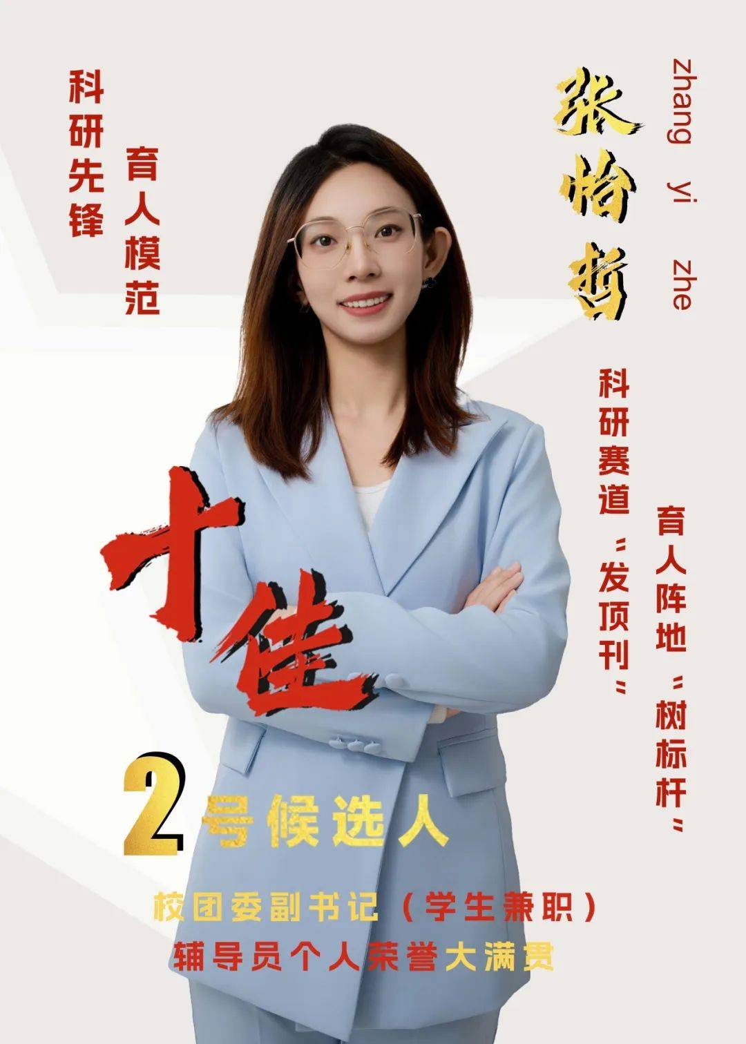事迹精要:张怡哲,党员,微电子学院2023级硕士研究生。已发表两篇SCI 1区TOP论文,一篇SCI 1区TOP论文在投,综测排名专业第一。现任校团委副书记(学生兼职,全校仅两人,近3年内唯一硕士生)、微电子学院2023级硕士第二党支部书记。连续六年担任专兼职辅导员,获天津大学优秀辅导员、辅导员最佳新人奖、十佳个人案例等辅导员个人荣誉大满贯,入选 “天津大学学生思政人才培育计划(首批)”。获国家奖学金、天津市优秀学生干部、天津大学研究生党员标兵(同届学生唯一)、中国国际大学生创新大赛(2023)全国金奖、第十八届“挑战杯”大学生课外学术科技作品竞赛全国二等奖、暑期实践项目全国TOP10、第二届全国职业规划大赛天津市银奖、天津大学党务先进个人、天津大学科技创新先进个人、天津大学优秀学生干部等校级以上荣誉40余项。